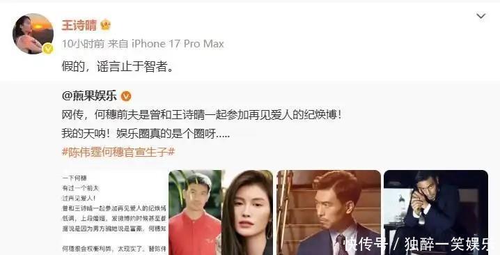 结语但是对于陈伟霆还是要祝福的,有孩子是好事,毕竟已岁的陈伟霆也老大不小了。其他的就还是那句话,吃瓜要保持理智,不信谣不传谣。对此大家还有什么不同的看法,欢迎来评论区讨论~信息来源:潇湘晨报——何穗前夫是曾和王诗晴一起参加《再见爱人》的纪焕博王诗晴: 假!信息来源:百度百科——陈伟霆信息来源:百度百科——何穗